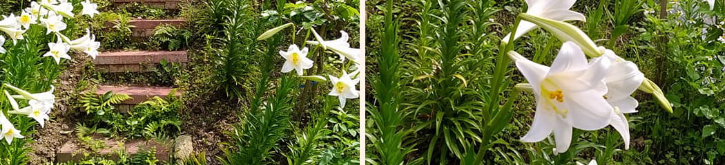 櫻花樹下斜坡上,綻放中的鐵砲百合~